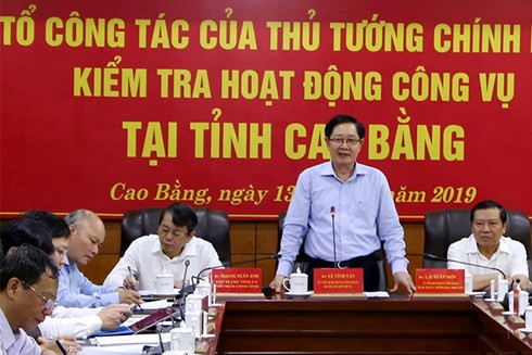 Tổ công tác về kiểm tra công vụ của Thủ tướng do Bộ trưởng Nội vụ Lê Vĩnh Tân làm Trưởng đoàn hôm qua có buổi làm việc và kiểm tra hoạt động công vụ tại UBND tỉnh Cao Bằng.