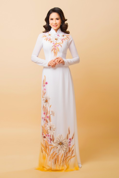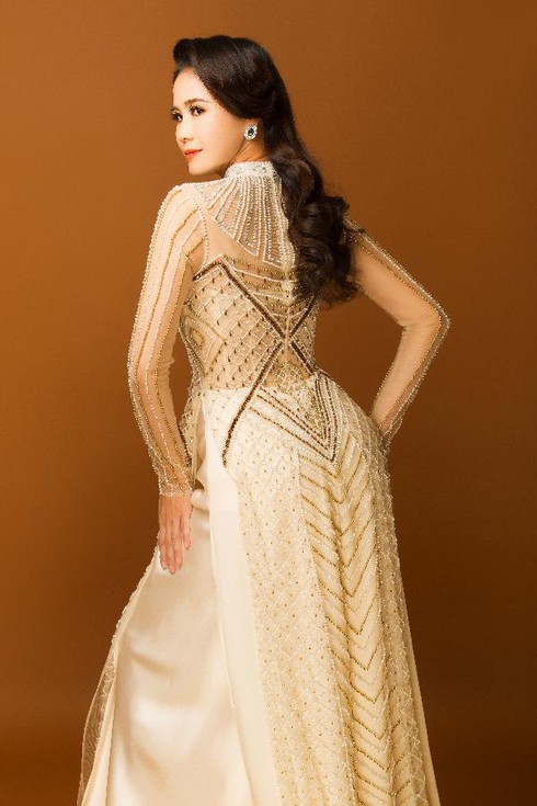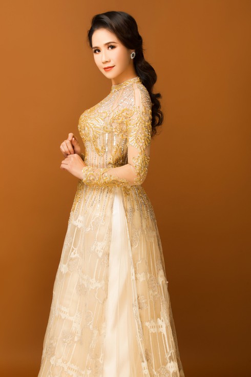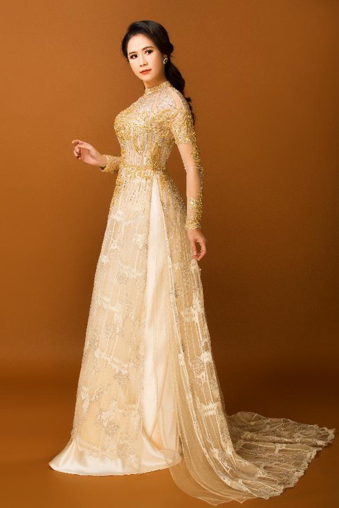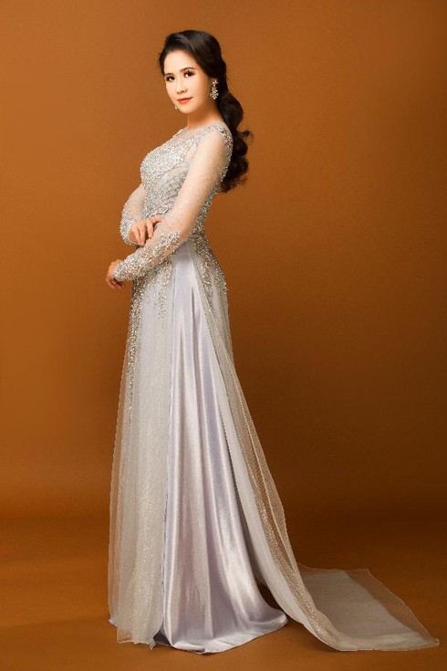 Là người thường xuyên diện áo dài và am hiểu về thời trang, Vân Anh đánh giá cao những thiết kế ren lưới sử dụng chất liệu chủ đạo là voan, lụa cao cấp. Chị cũng rất ấn tượng với bộ áo dài được may họa tiết chỉ nổi, đính kim tuyến, sequin. Trong những lựa chọn áo dài của Vân Anh, chị cực kỳ yêu thích thiết kế đơn sắc vì dễ phối đồ.