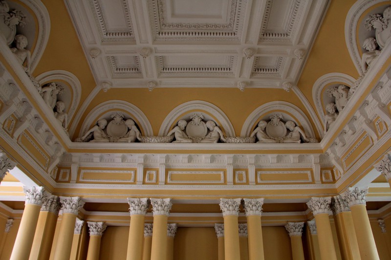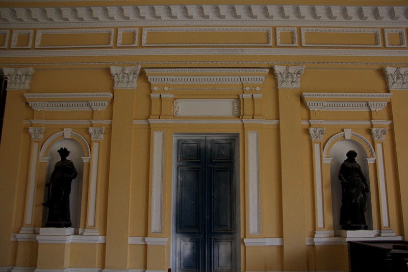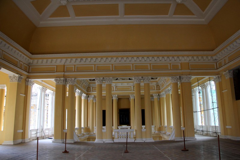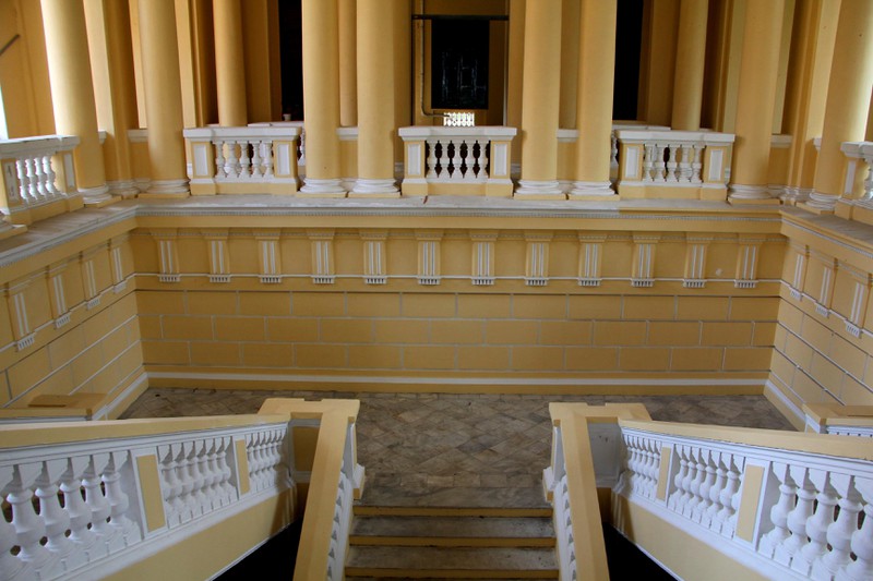 Một trong những khu vực kiến trúc quan trọng và đẹp nhất là sảnh chính tại tầng 2 (lầu 1) của tòa nhà, đã được sơn và hoàn thiện trùng tu lại.