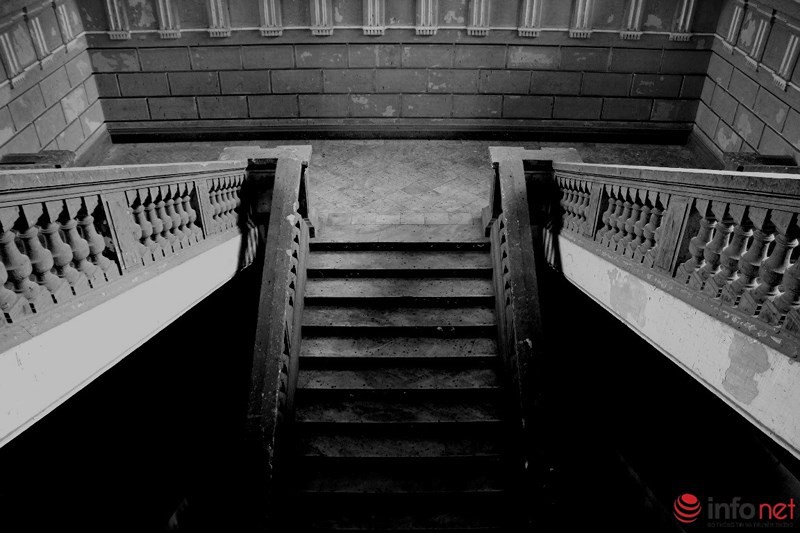 Chiếc cầu thang chính dẫn từ tầng trệt lên sảnh chính ở tầng 2 trước khi được sơn lại.