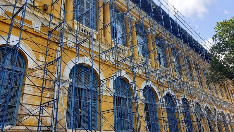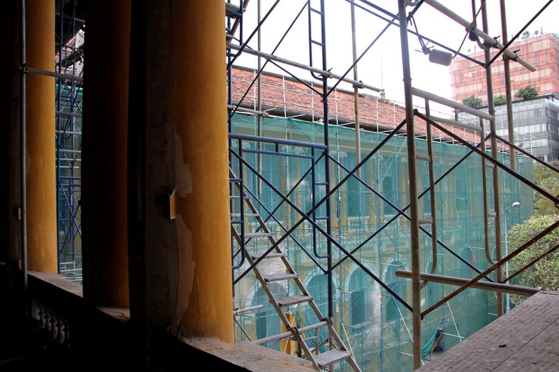 Một phần trụ sở đang tiếp tục được trùng tu, sửa chữa...