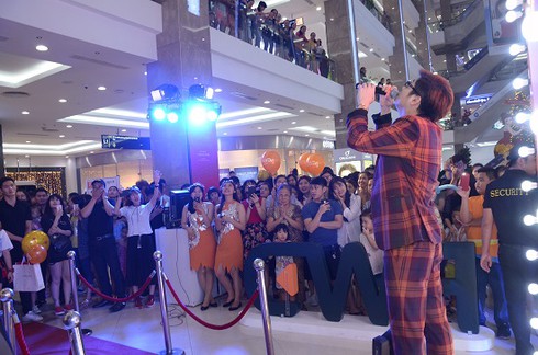Ca sĩ Bùi Anh Tuấn sau khi tạo dáng chụp hình theo phong cách siêu sao đã chiêu đãi người tham dự với giọng hát ngọt ngào, truyền cảm. |