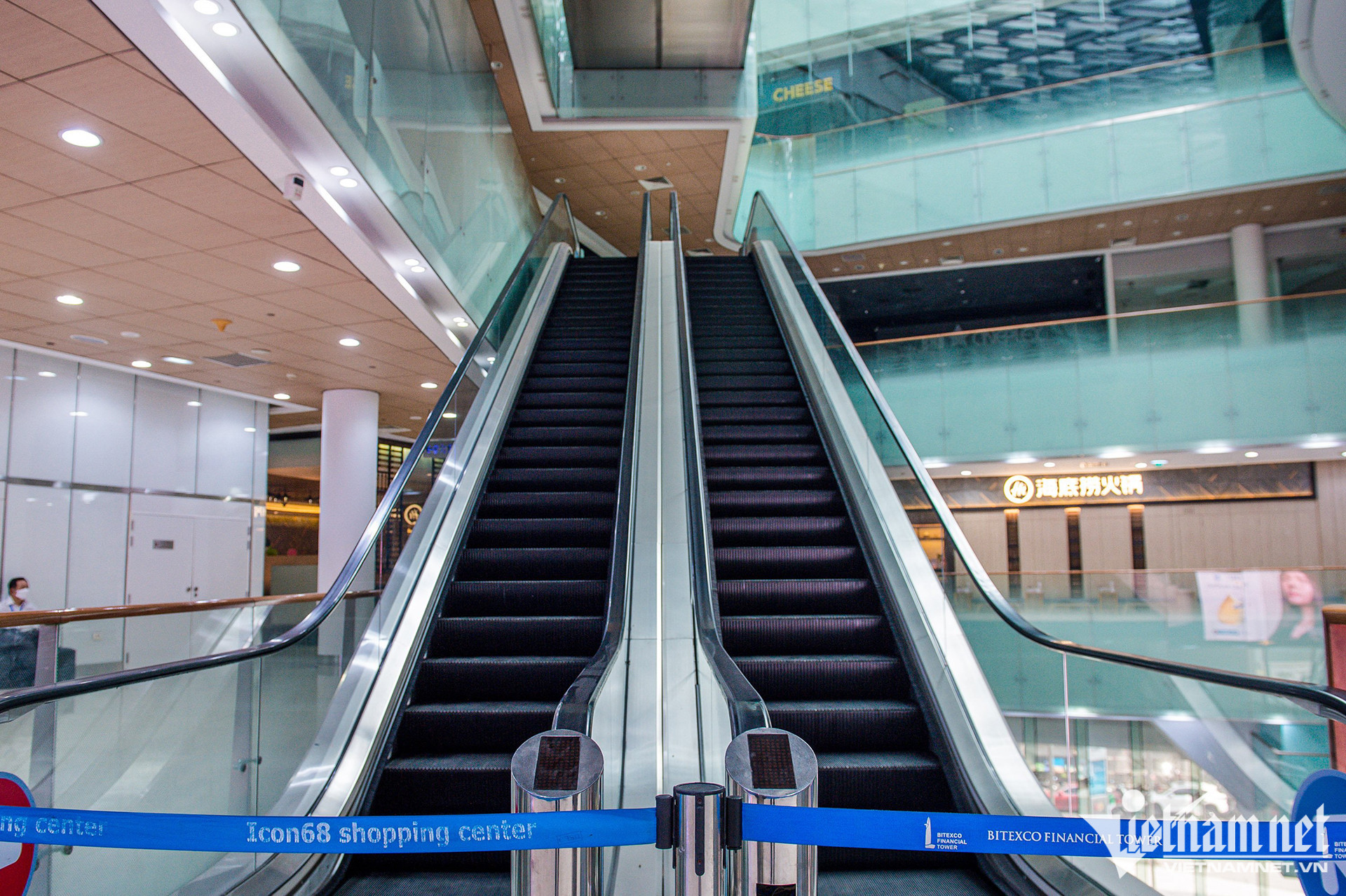 Vắng vẻ cả ngày lẫn đêm, nhiều tầng lầu không còn dấu hiệu hoạt động kinh doanh, các gian hàng được quây bạt, khóa cửa là tình cảnh tại Bitexco - tòa nhà cao thứ 2 TP.HCM hiện nay.