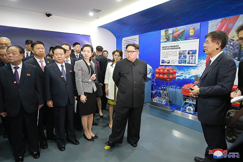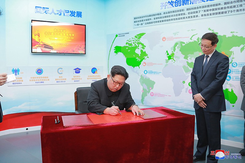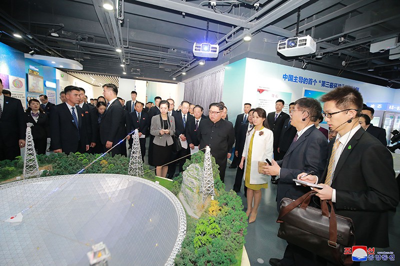 Ông Kim Jong-un cùng phu nhân tới thăm một triển lãm các thành tựu khoa học của Trung Quốc.(Ảnh: KCNA) |