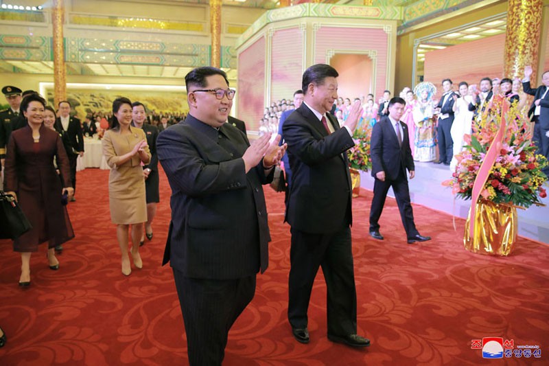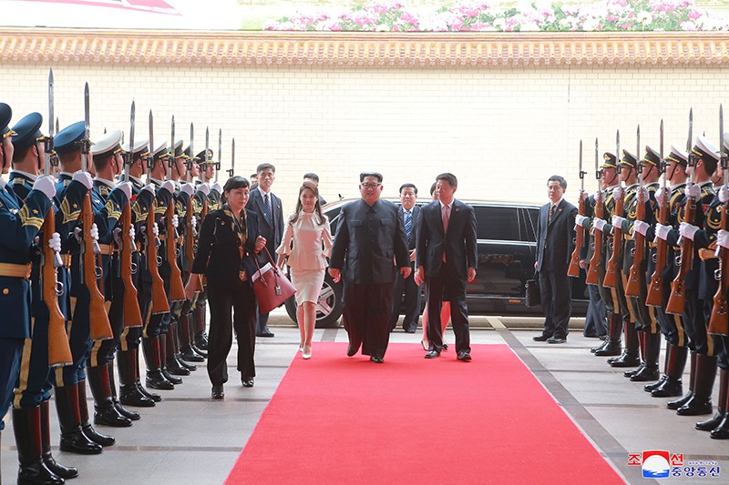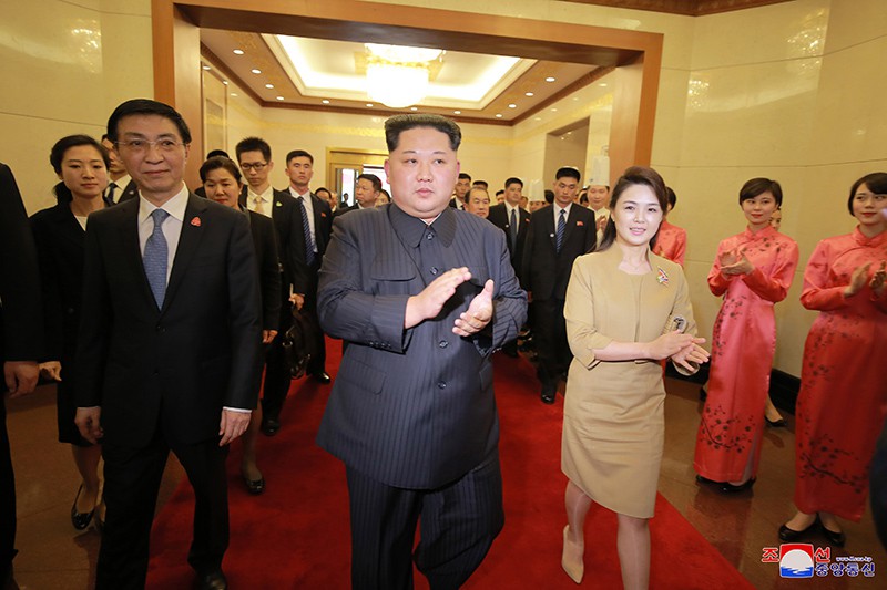 Chủ tịch Trung Quốc và phu nhân Ri Sol-ju.(Ảnh: KCNA) |