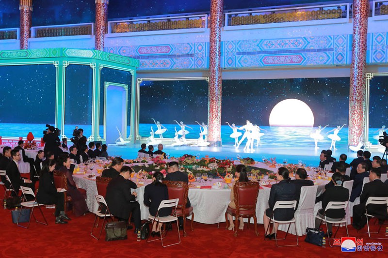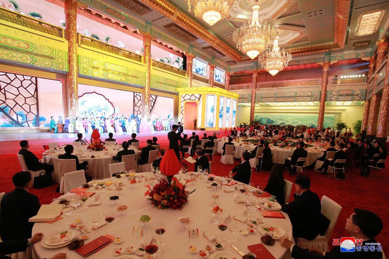 Quang cảnh của buổi yến tiệc chào mừng nhà lãnh đạo Triều Tiên.(Ảnh: KCNA) |