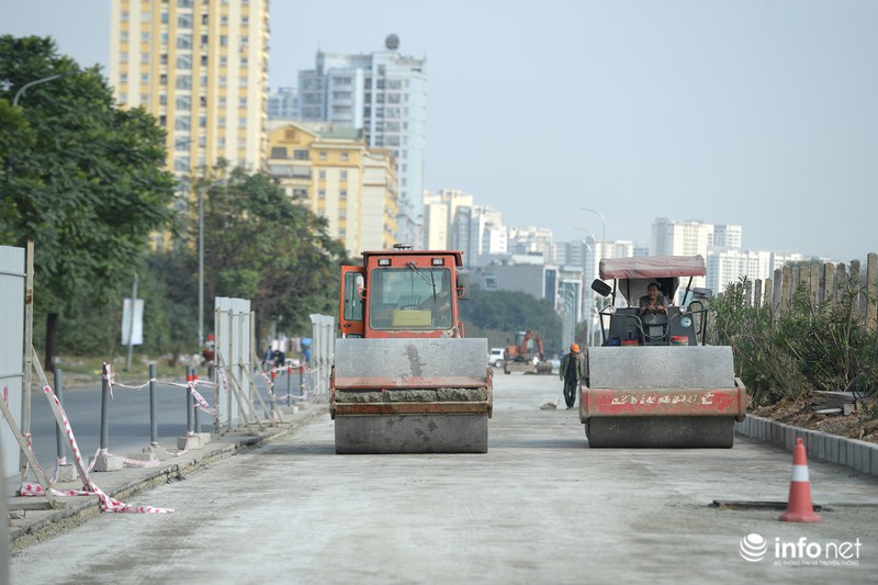 Tuy dự kiến 31/12 phải hoàn thành 100% nhưng nhiều hạng mục vẫn chưa được đơn vị thi công triển khai xong, ví dụ khâu lát vỉa hè hai bên đường.