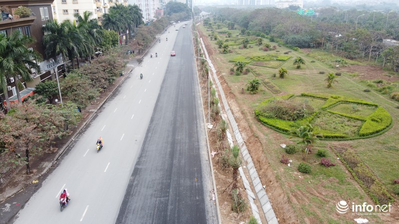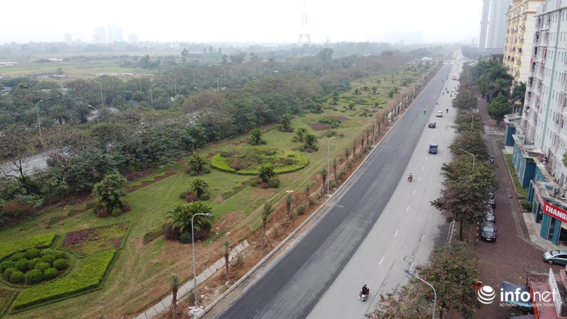 Sau khi hoàn thiện xén thảm cỏ, mỗi bên đường gom đại lộ Thăng Long rộng thêm 18,5 m và có thêm hai làn xe.