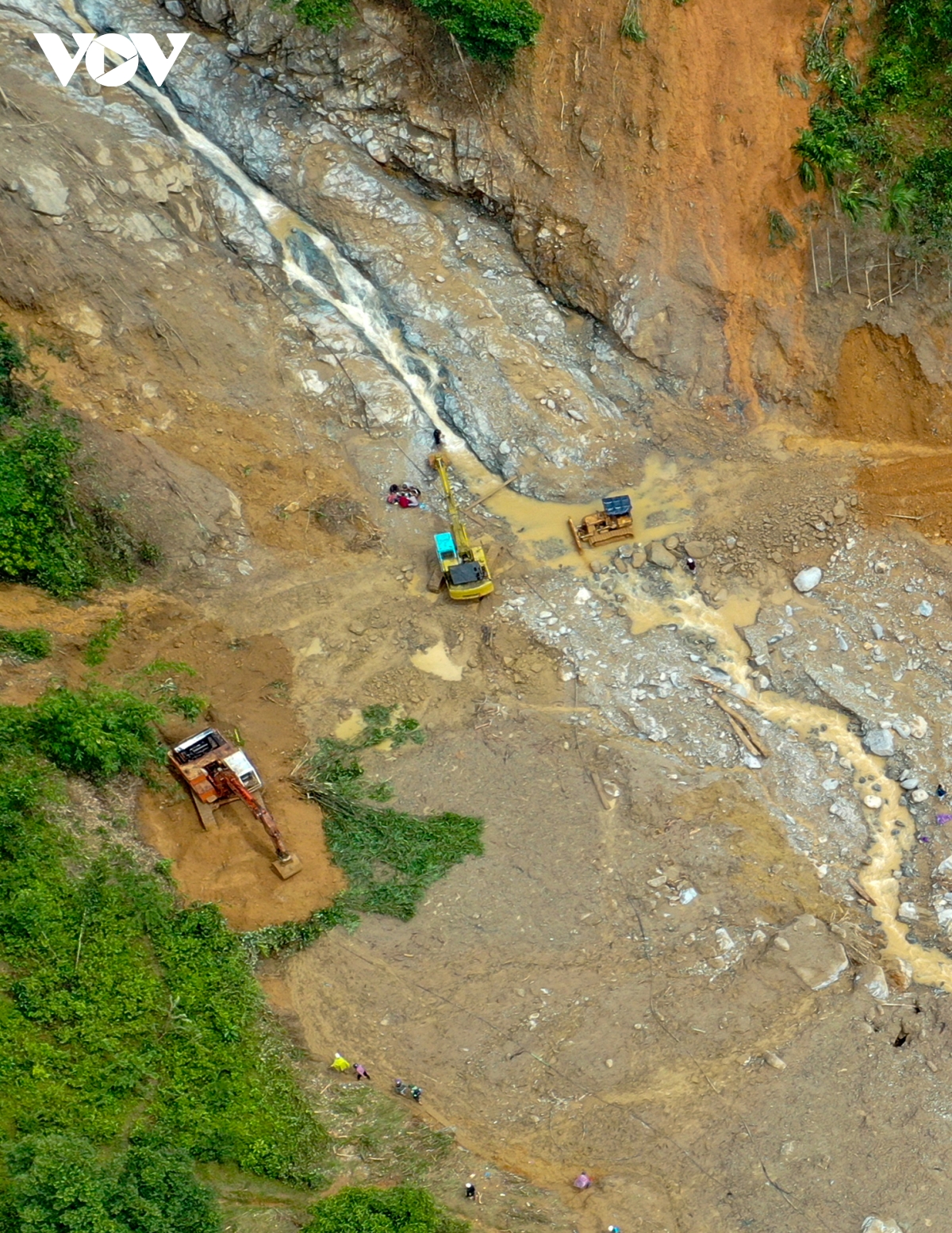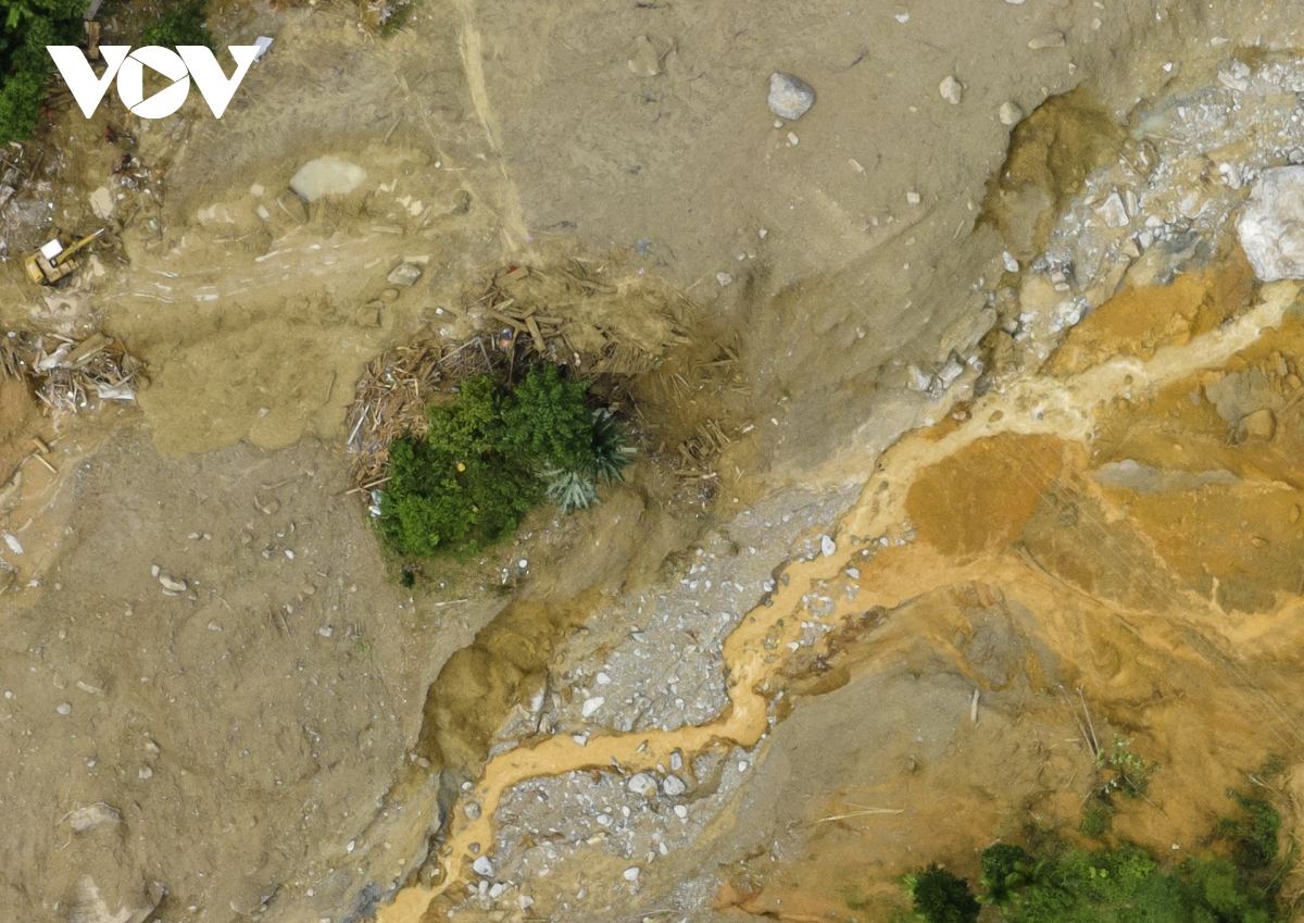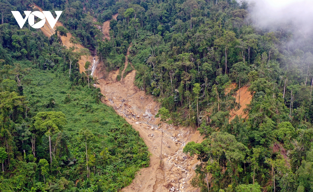 Toàn cảnh khu vực sạt lở ở Trà Leng làm nhiều người bị vùi lấp