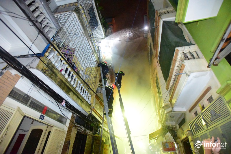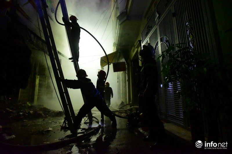 Do căn nhà nằm trong ngõ sâu nên các xe cứu hoả không vào được, lực lượng cứu hộ đã phải chủ động đưa các thiết bị chữa cháy, cứu hộ cứu nạn vào hiện trường để khống chế ngọn lửa. |