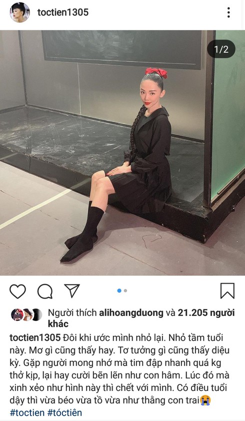 Cách đó ít ngày, cô nàng thường xuyên đăng tải những chia sẻ chiêm nghiệm về cuộc đời mình cho khán giả. Cô mong ước được nhỏ lại, được mơ tưởng những điều diệu kỳ như ngày xưa. Có lẽ chính cái khốc liệt của showbiz khiến Tóc Tiên muốn quay lại thưở còn non trẻ, được mơ, được khát vọng về đam mê, về sở thích và về tình yêu.