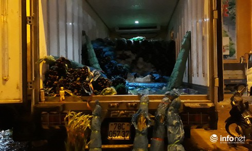 21h30’ tối 3/2 (tức tối 29 tết) tại khu vực chợ đầu mối Đông Hương, phường Đông Hương, TP Thanh Hóa (Thanh Hóa) vẫn còn một số xe đông lạnh mang BKS 78, 79... cùng nhiều thương lái ở các tỉnh Phú Yên, Bình Định... cố gắng mời chào khách mua hoa lay ơn về chơi tết.