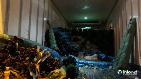Mặc dù trời tối, nhưng nhiều xe đông lạnh bán hoa mang biển số các tỉnh phía nam vẫn đậu ở khu vực cổng chợ đầu mối, bên cạnh đó dọc đường đi cũng có một số bãi được tập kết hoa để bán cho khách qua đường nhưng số lượng người mua hoa rất ít.