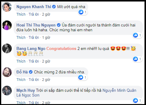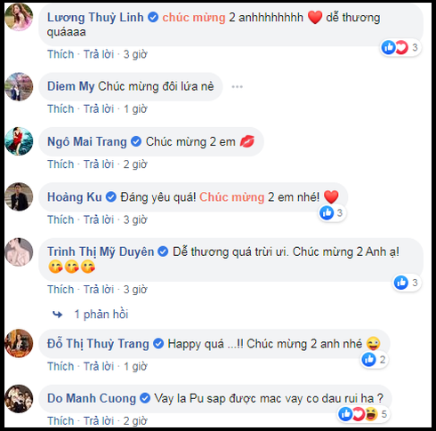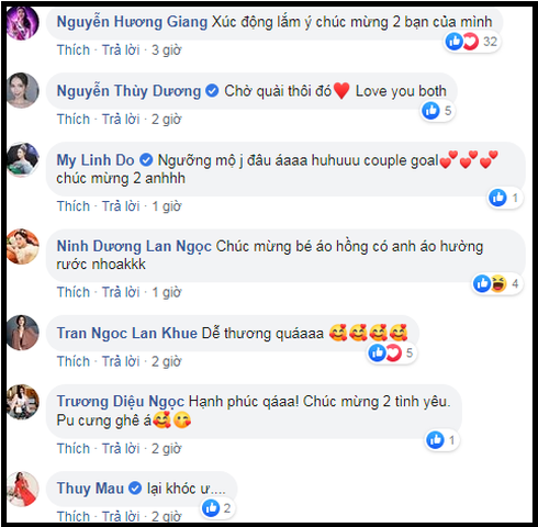 Vốn dĩ là cặp đôi quen biết và làm việc với nhiều nghệ sĩ trong showbiz, chính vì vậy thông tin Quân Nguyễn cầu hôn Pu Lê nhận được sự ủng hộ nhiệt tình từ sao Việt, nhiều người đồng loạt gửi lời chúc phúc đến cả hai và mong chờ về một đám cưới trong tương lai.
