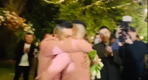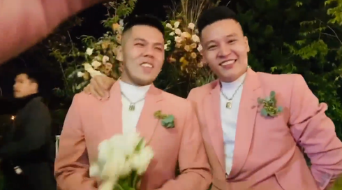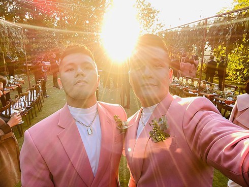 Ngoài những khoảnh khắc hạnh phúc của cô dâu chú rể, hình ảnh đáng nhớ nhất trong đám cưới hôm qua chính là màn cầu hôn của cặp đôi Quân Nguyễn và Pu Lê. Sau khi Pu Lê bắt được hoa cưới từ cô dâu tóc tiên, bạn trai của anh là Quân Nguyễn đã quỳ xuống lấy nhẫn ra ngỏ lời cầu hôn.