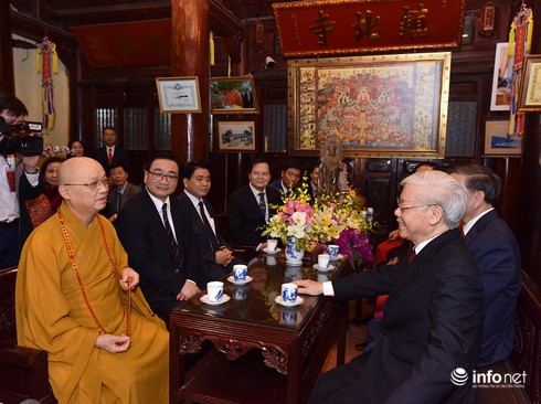 Tổng Bí thư, Chủ tịch nước Nguyễn Phú Trọng đến thăm và dâng hương tại chùa Trấn Quốc.