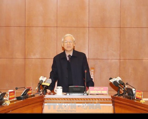 | Tổng Bí thư Nguyễn Phú Trọng phát biểu kết luận cuộc họp. Ảnh: TTXVN |