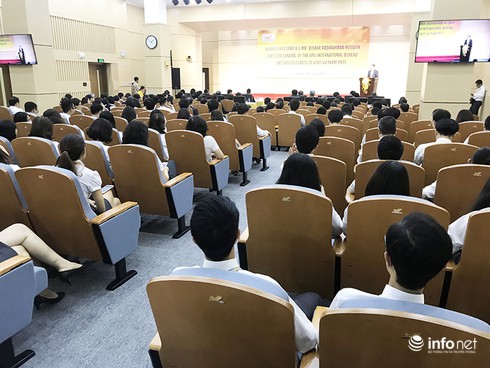 Toàn cảnh buổi gặp mặt nói chuyện của Tổng Giám đốc UPU tại trụ sở Vietnam Post ở Hà Nội chiều 26/6. |