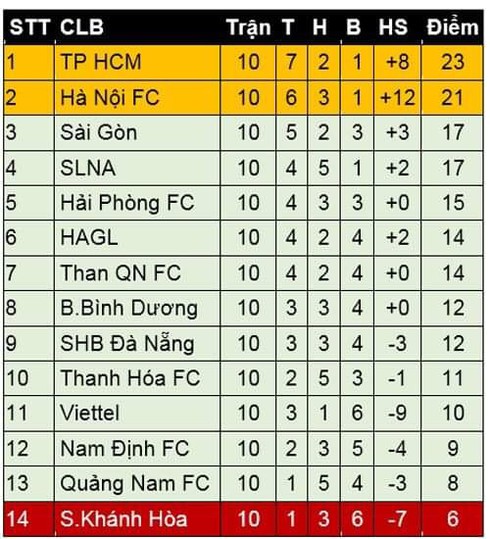 Bảng xếp hạng sau vòng 10 V-league 2019: