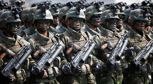 Línhđặc nhiệm Triều Tiên tham gia một cuộc diễu binh quân sự. |