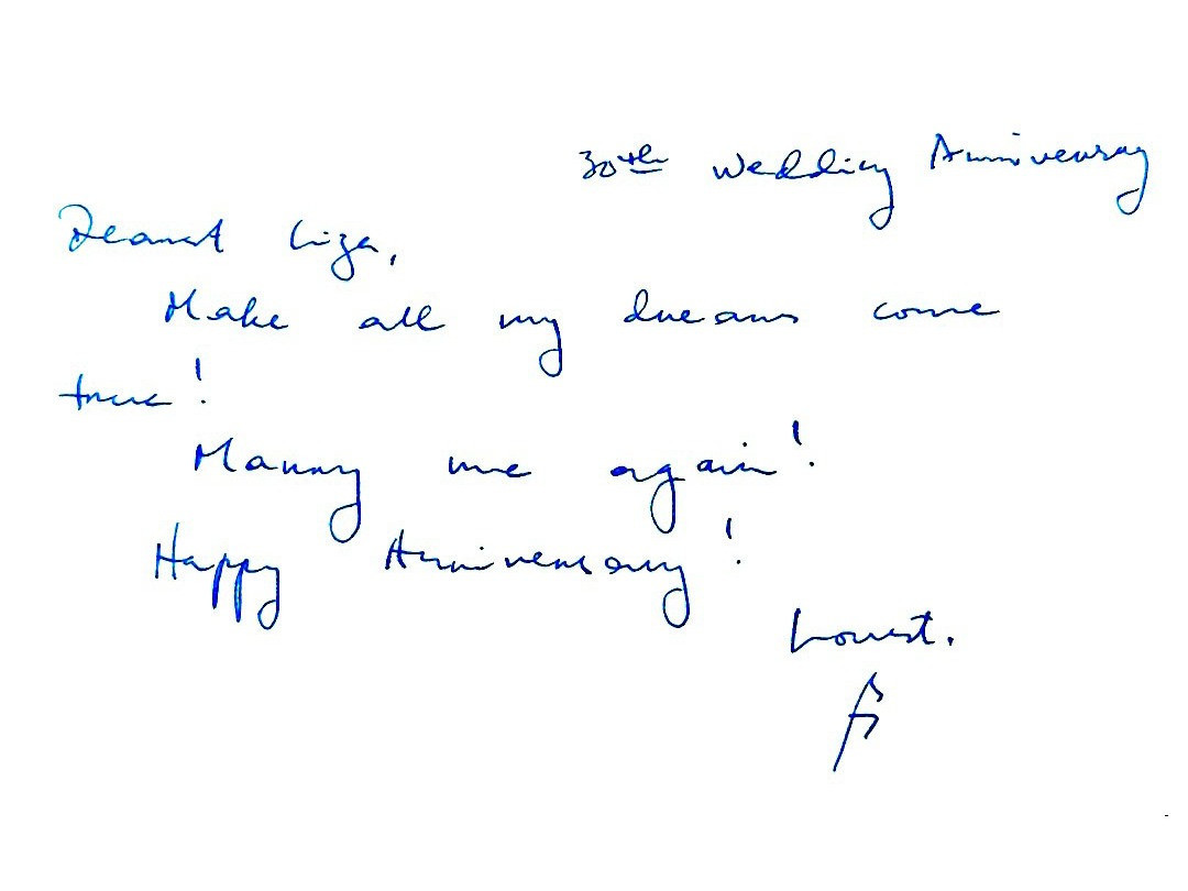 Trước sự chứng kiến của gia đình và bạn bè thân thiết, ông Marcos đã trao cho bà Liza một chiếc nhẫn và một bức thư tay với mong muốn cả hai sẽ kết hôn một lần nữa. Trong bức thư tay, Tổng thống Marcos viết: "Liza yêu dấu, hãy biến giấc mơ của anh thành sự thực. Hãy làm vợ anh một lần nữa!".