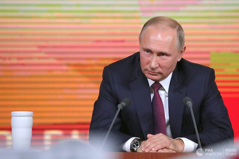 Tổng thống Nga Putin trong buổi họp báo năm 2017 |