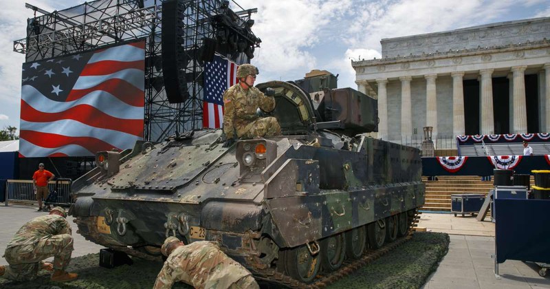 Buổi lễ kỷ niệm Quốc khánh Mỹ còn có sự trình diễn của các máy bay chiến đấu, xe tăng và các đơn vị phụ trách nghi lễ trong quân đội. Cụ thể, theo Nhà Trắng, dàn vũ khí tối tân tham gia buổi lễ có chiếc Không lực Một, các máy bay F-18, F-35, F22, C-130, MH-60, MH-65, B-2, V-92, V-22 và AH64 cùng 2 chiếc xe tăng Abrams, 2 xe chiến đấu bộ binh Bradley và 2 thiết giáp M88.