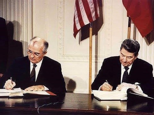 Năm 1987, Tổng thống Mỹ Ronald Reagan và lãnh đạo Liên Xô Mikhail Gorbachev đã đặt bút ký Hiệp ước Các lực lượng Hạt nhân Tầm trung (INF). |