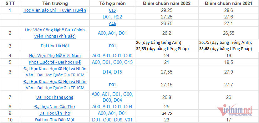 Dưới đây là 10 trường đại học có điểm chuẩn ngành Truyền thông đa phương tiện cao nhất trong 2 năm qua: