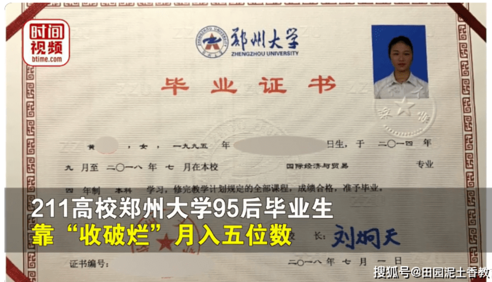 Mới đây, truyền thông Trung Quốc đưa tin, một nữ sinh tốt nghiệp ngành kinh tế và thương mại quốc tế tại ĐH Trịnh Châu (top 40 trong nước) kiếm được hơn 10.000 NDT/tháng (khoảng hơn 34 triệu VNĐ/tháng) dựa vào việc thu gom phế liệu.