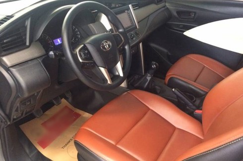 Nội thất của Toyota Innova 2016 đang được rao bán còn khá mới. Ghế ngồi đã được chủ cũ bọc da lại toàn bộ, sang trọng và dễ bảo dưỡng hơn so với loại nỉ nguyên bản. Tapi cửa cũng được thay thế chất liệu bọc da màu trắng, do đó sẽ tiện cho việc lau chùi, cũng như ngăn bám mồ hôi tốt hơn chất liệu nỉ.