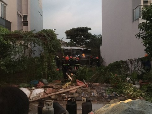 Đến 19h cùng ngày, cảnh sát PCCC quận 12 vẫn đang phong tỏa hiện trường và xịt nước vào bên trong căn nhà.