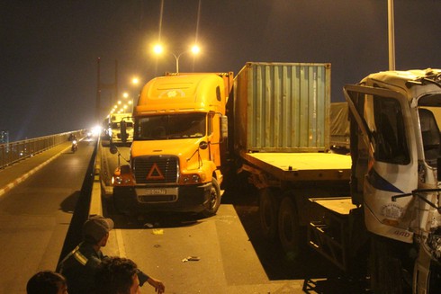 Trước đó, chiều tối ngày 13/9, 3 xe container đã tông nhau liên hoàn trên cầu Phú Mỹ, quận 2, TP.HCM làm cho một xe bị dập nát, giao thông kẹt cứng nhiều giờ liền.