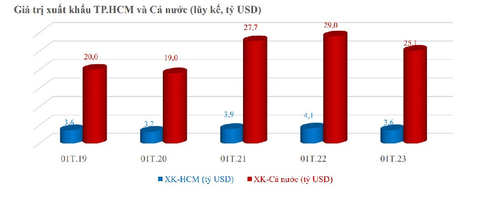 Còn theo dữ liệu từ Tổng cục Thống kê, kim ngạch xuất khẩu hàng hóa tháng 1/2023 của cả nước ước đạt 25,08 tỷ USD, cũng giảm 13,6% so với tháng trước và giảm 21,3% so với cùng kỳ năm 2022.