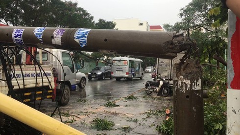 Tại hiện trường, cây xà cừ có đường kính khoảng 0,5 mét, cao hàng chục mét đè lên đường dây điện. Sự cố còn làm 1 cột điện bị gãy, 1 bóng đèn chiếu sáng bị hư hỏng, giao thông qua khu vực này bị ùn ứ. Rất may, không có ai bị thương.