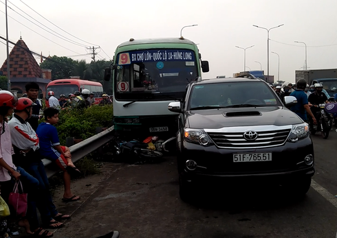Vào thời điểm trên, xe buýt biển số 53N-3453 chạy tuyến bến xe Chợ Lớn-Quốc lộ 1A-Hưng Long bất ngờ mất thắng lao về phía trước, tông và cuốn nhiều người lẫn xe máy vào gầm. Chiếc xe buýt chỉ dừng lại khi đâm tiếp vào ô tô 7 chỗ đang lưu thông phía trước.