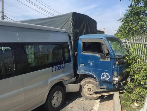 Vụ tai nạn xảy ra vào 7h30 sáng ngày 17/11. Chiếc xe tải mang BKS: 51C-057.79 chạy trên QL1 theo hướng đi từ cầu vượt Sóng Thần về cầu vượt trạm 2 (Q. Thủ Đức). Khi đến gần giao lộ đường số 14 (phường Linh Trung, quận Thủ Đức) thì bất ngờ tông liên hoàn vào 4 xe tải khác và 1 xe khách loại 16 chỗ khiến các phương tiện dính chùm, hư hỏng nặng.