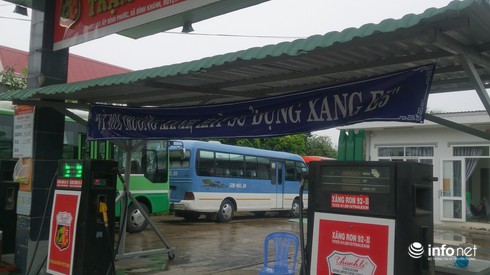 Để tuyên truyền cho người dân về lợi ích khi dùng xăng E5, ngoài việc tập huấn cho nhân viên để họ giải thích trực tiếp cho khách hàng, một số cửa hàng còn treo băng rôn ngay tại trụ bơm để người dân dễ quan sát.