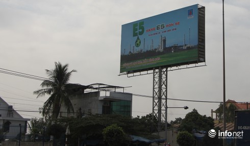 Nhiều hình thức tuyên truyền về lợi ích khi dùng xăng E5. |