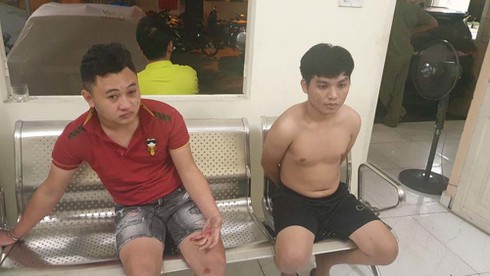 Nguyễn Minh Quân (trái) và Trương Quan Bình (phải) tại cơ quan Công an. |