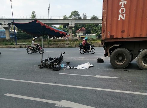 Cú va chạm mạnh khiến cả 3 người ngã xuống đường, bé gái 2 tuổi bị bánh xe container cán qua người tử vong tại chỗ. Trong khi người vợ và chồng cũng bị thương nặng phải nhập viện cấp cứu.