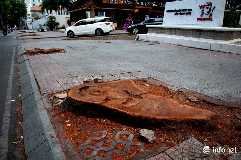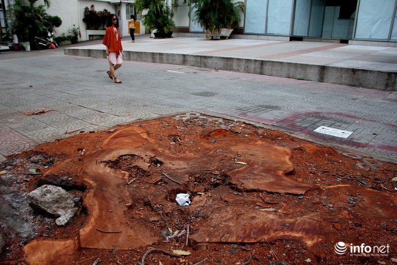 Khung cảnh thoáng đãng khác lạ sau khi chặt cây, trước đây khu vực này luôn rợp bóng mát. |