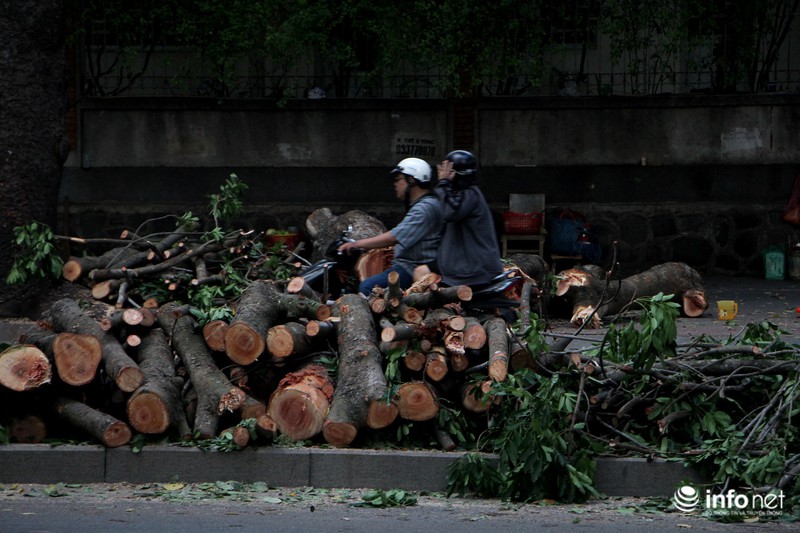 Do con đường có mật độ xe lớn nên ngay sau khi hạ xuống, thân và cành cây lập tức được cắt khúc và đưa đi để tránh ùn tắc giao thông. Theo thành phố, số gỗ có được sẽ dùng vào việc tu bổ các công trình kiến trúc cổ, hoặc làm ghế đặt tại các công viên. |