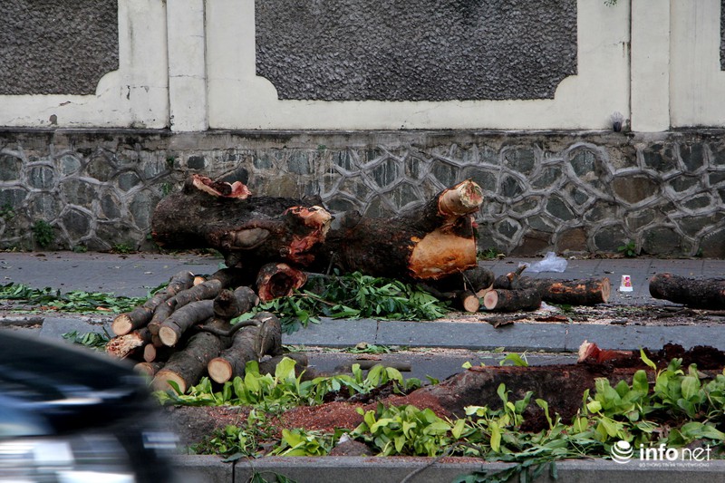 Số cây bị chặt lần này nằm ở đoạn giáp với đường Lê Duẩn. Như thường lệ, những cây lớn sẽ phải cưa, những cây nhỏ có thân thẳng, không sâu bệnh sẽ được bứng đi nơi khác chăm bón và trồng lại vào những vị trí khác. |