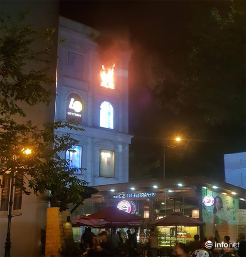 Lửa bốc lên tại Trung tâm thương mại Diamond Plaza vào tối 11/8. |