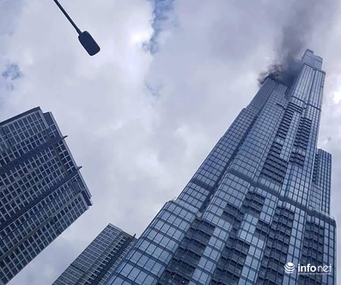 Trước đó, vào 15h40’ chiều 11/8 nhiều người dân chứng kiến khói đen nghi ngút bốc lên từ tầng 64 toà nhà Landmark 81 thuộc Khu đô thị Vinhomes Central Park, quận Bình Thạnh, TP.HCM. Khu vực cháy được xác định là phòng kỹ thuật, đang thi công.