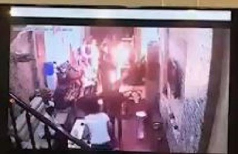 Hiện trường vụ phóng hỏa được camera an ninh ghi lại. |