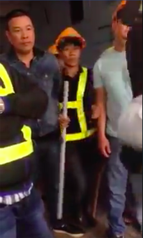Những người lạ mặt cầm tuýp sắt khi yêu cầu các hộ dân cho phá dỡ không thành.(Ảnh cắt từ clip) |