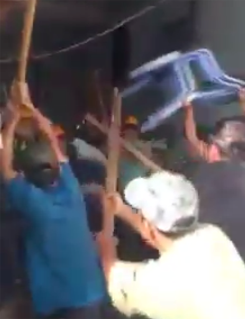 Hình ảnh xô xát giữa nhóm người lạ mặt và các hộ dân. (Ảnh cắt từ clip) |