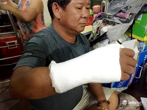 “Tôi bị đánh thương tích nặng ở đầu phải khâu 28 mũi, gãy tay phải, còn hai người khác cũng bị hành hung dã man. Công an phường không có mặt kịp thời, phải đến khi Cảnh sát 113 xuất hiện thì tình hình mới được kiểm soát”, ông Phong bức xúc nói.